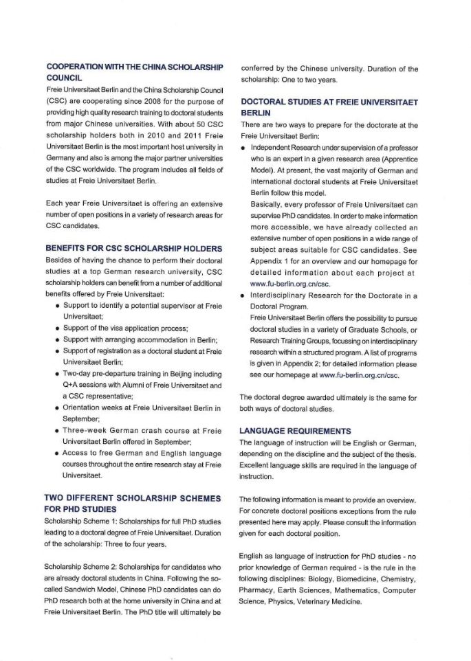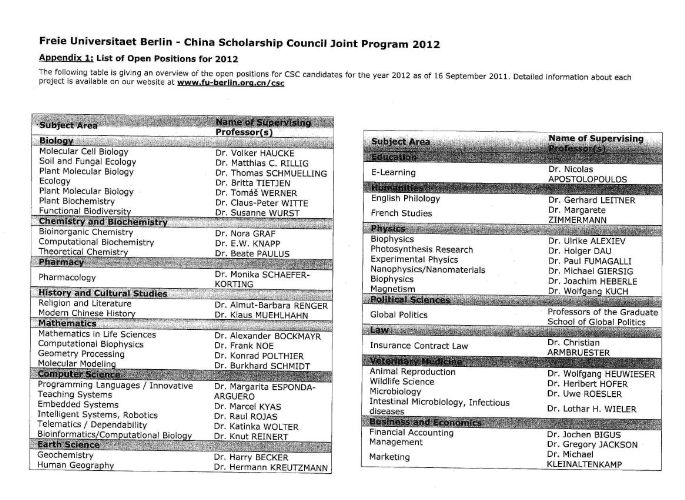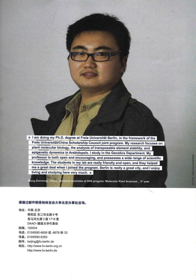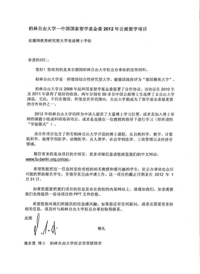 德意志学术交流中心与柏林自由大学--中国国家留学基金委日前发布留学项目,欢迎同学去申请,具体可到中德学院咨询。