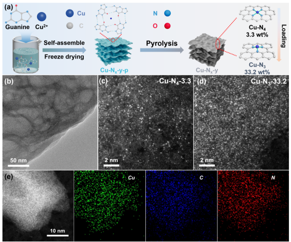 图1 Cu-Nx-y催化剂的制备及形貌、结构表征