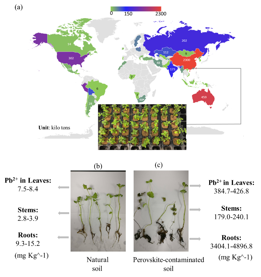 卤素钙钛矿是当前太阳能电池、发光二级管、传感器等领域的研究热点,其中性能优异且稳定的钙钛矿太阳能电池常使用含铅化合物作为其吸收剂/光敏剂。值得注意的是,此类铅化合物(无机或有机)均为水溶性,在环境中呈自由态,容易被植物吸收而进入食物链,从而影响生命健康。然而,对于组件中的金属离子进入环境后,将对植物产生怎样的影响,仍然缺乏系统的研究及详细的数据支撑。