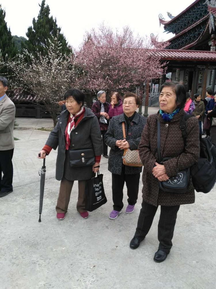 组织退休教师迎新春座谈和前往林阳寺赏梅。