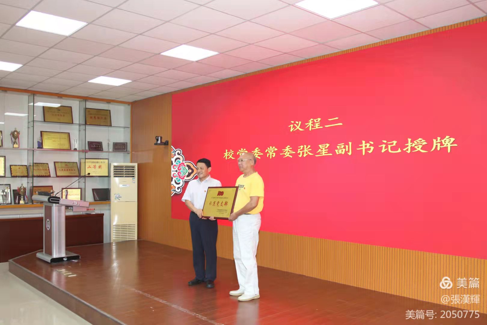 随后,校党委张星副书记为退休党支部书记卞发春同志授牌,在场的各位老师一同见证了这一重要时刻。