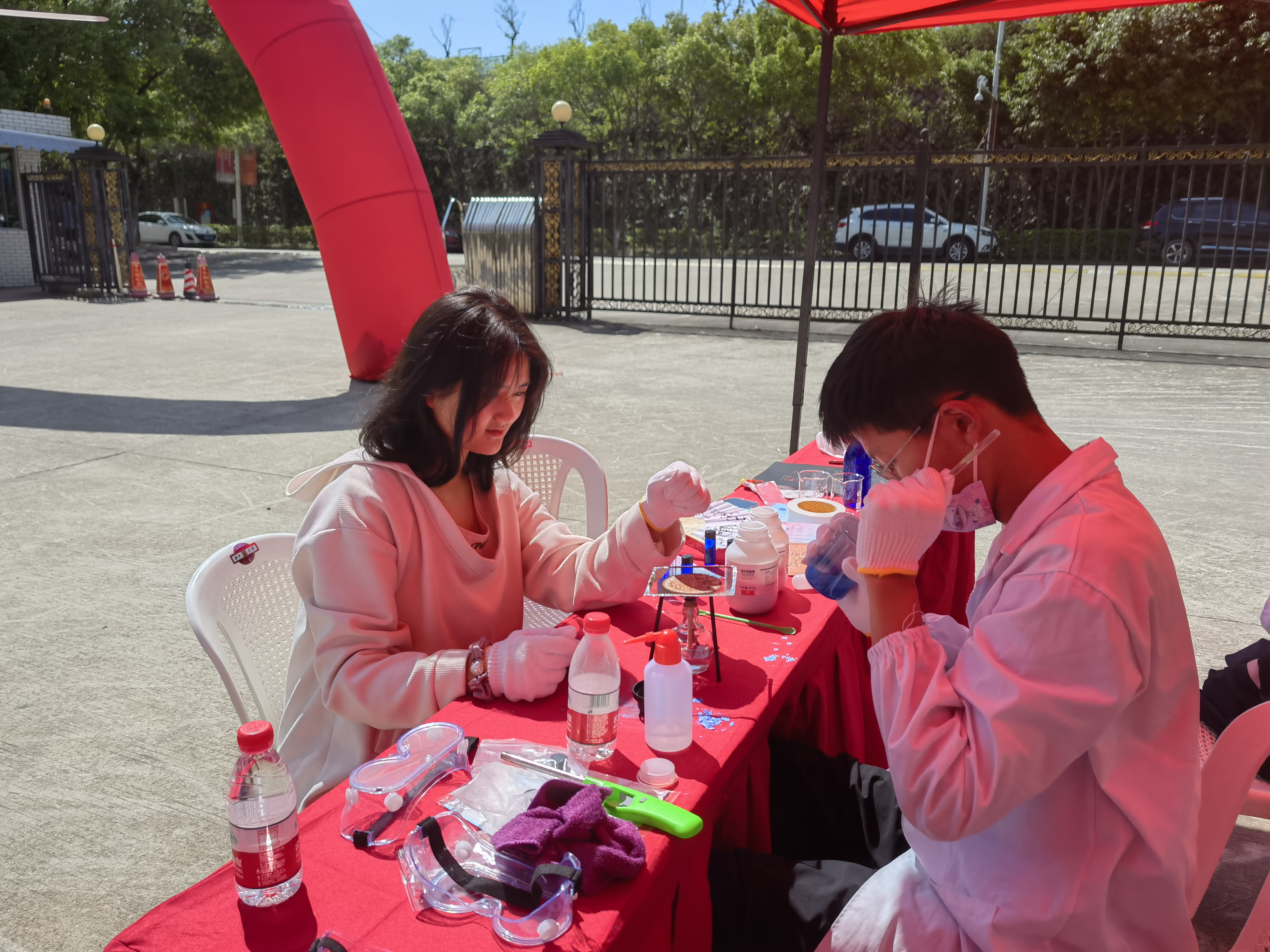 2022级本科生在铜盘校区举行了五一游园会会场,开展“化‘young’科普讲堂小讲师”系列活动。