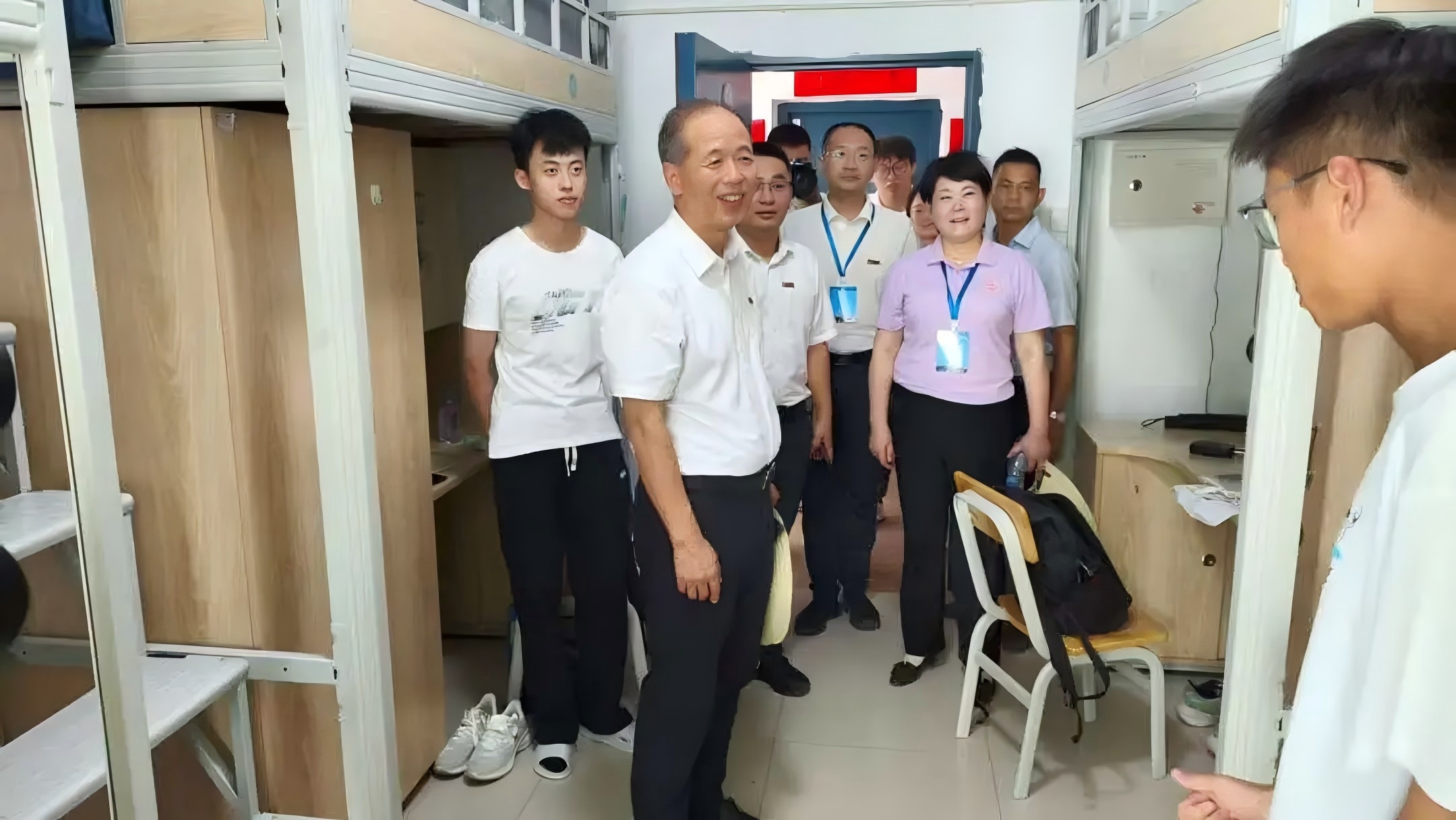 迎新报到点,细致指导迎新工作,详细了解迎新工作安排,并与新生及家长亲切交流。