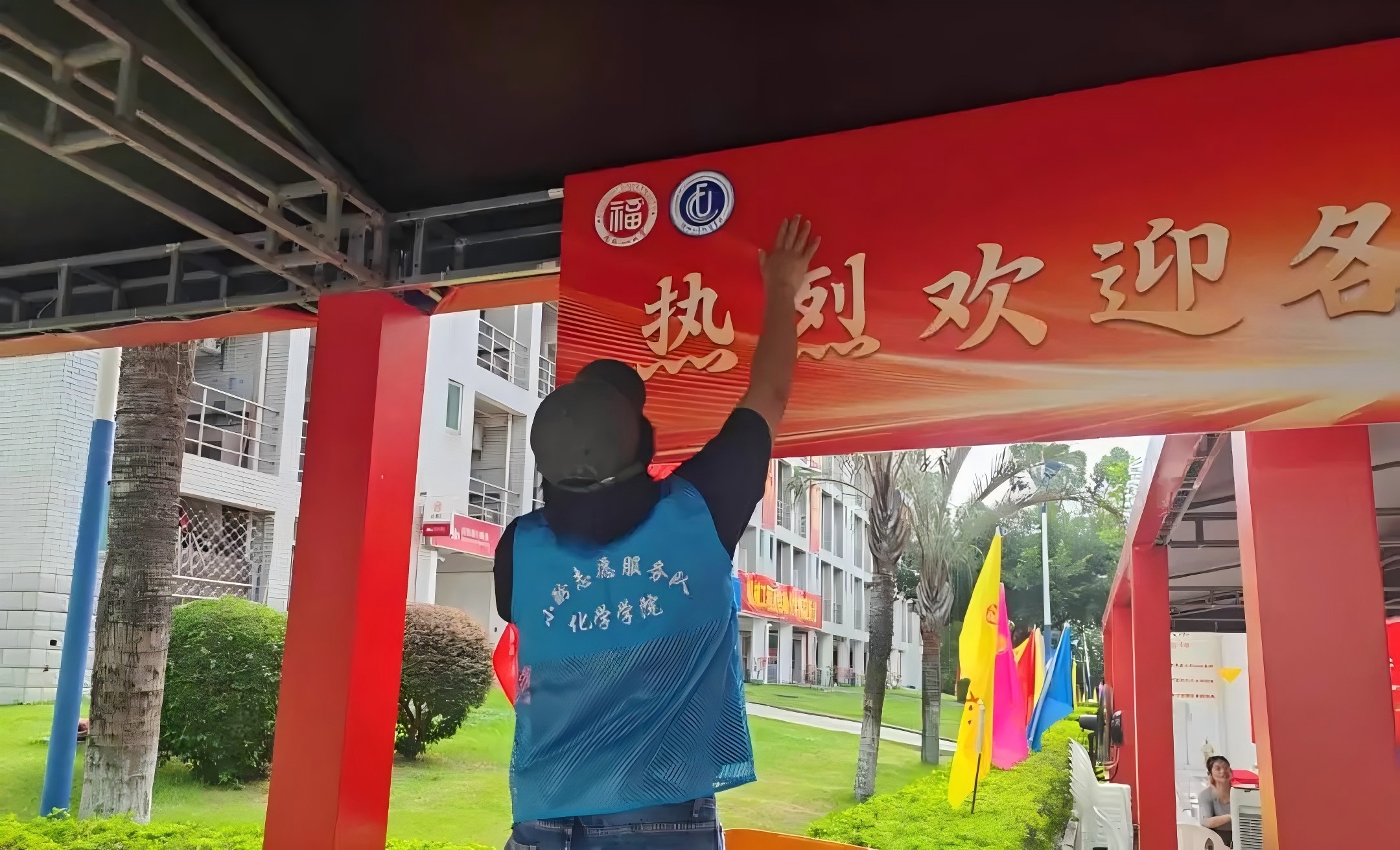 秋日暖阳洒满福大校园,化学元素与青春笑脸在此相遇,一场名为“迎新”的化学反应正在悄然进行。