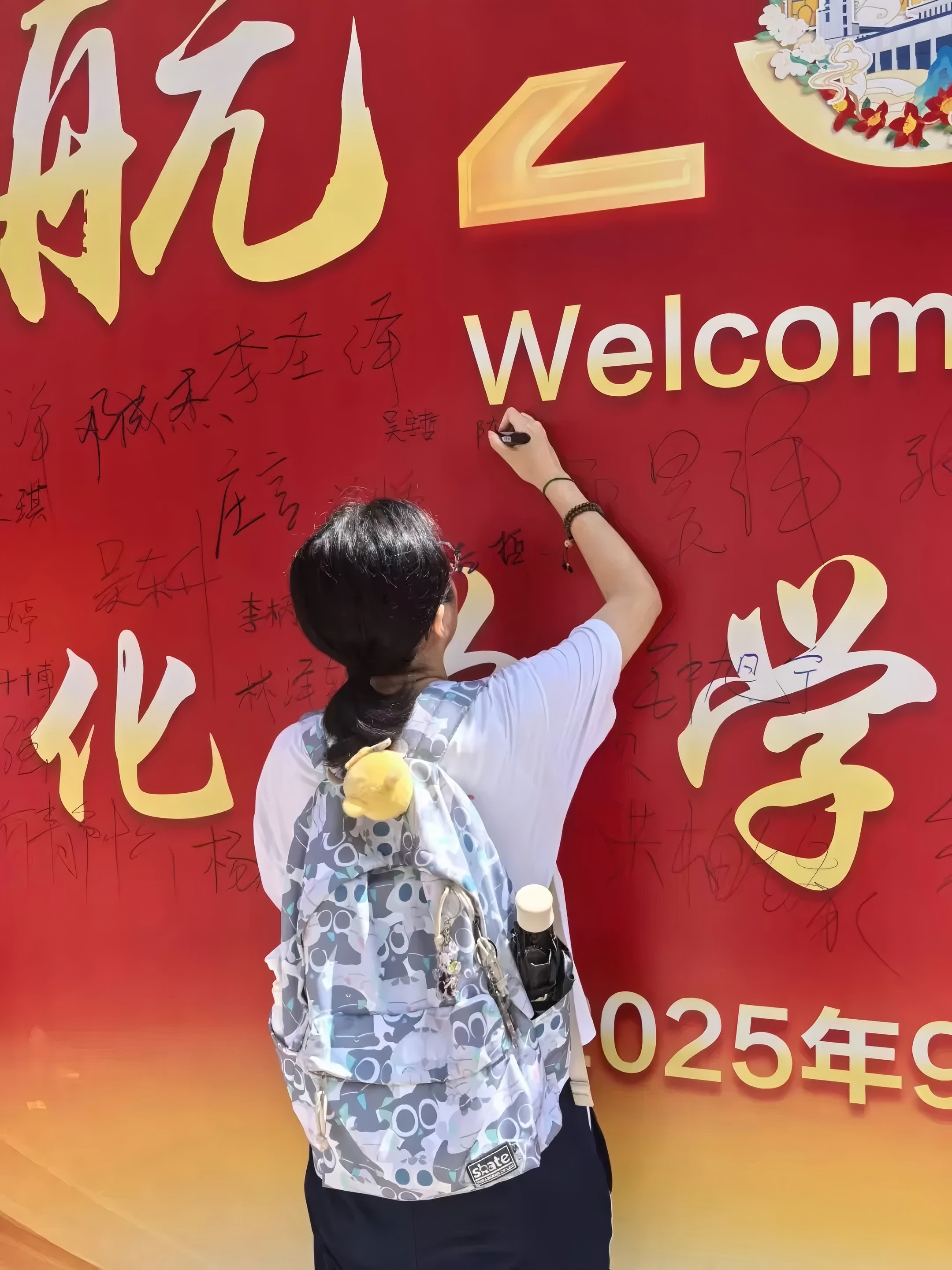 学院用充满化学元素的特色迎新活动,为新生们带来了一场生动的“开学第一课”。走进迎新现场,一条条创意十足的化学主题横幅格外引人注目。这些巧妙的元素谐音标语,既展示了化学学科的特色,又传递了对新生的热烈欢迎和美好祝愿。