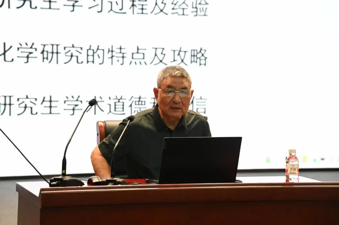 学院副院长张金水教授围绕“导学关系”展开深入讲解,鼓励同学们主动与导师积极沟通,明确研究目标,合理规划时间,建立互信、互助、互敬的导学关系,为未来科研之路奠定坚实基础。