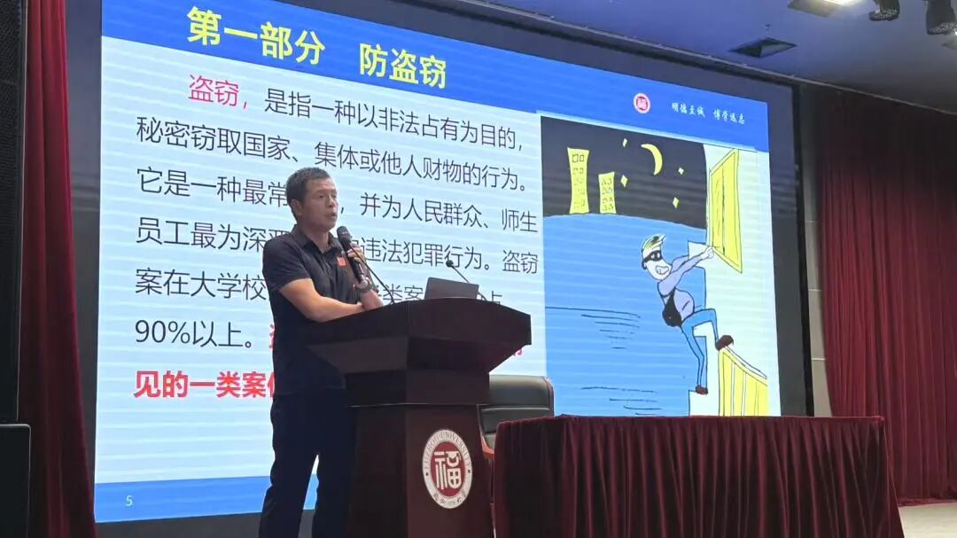 校保卫部林礼文老师作了题为《校园安全与网络安全防范》的专题讲座。林礼文老师结合自身工作经验与典型案例,向同学们普及了消防安全、交通安全等知识并传授识别、防范诈骗的实用技巧,引导同学们提高安全防范意识。