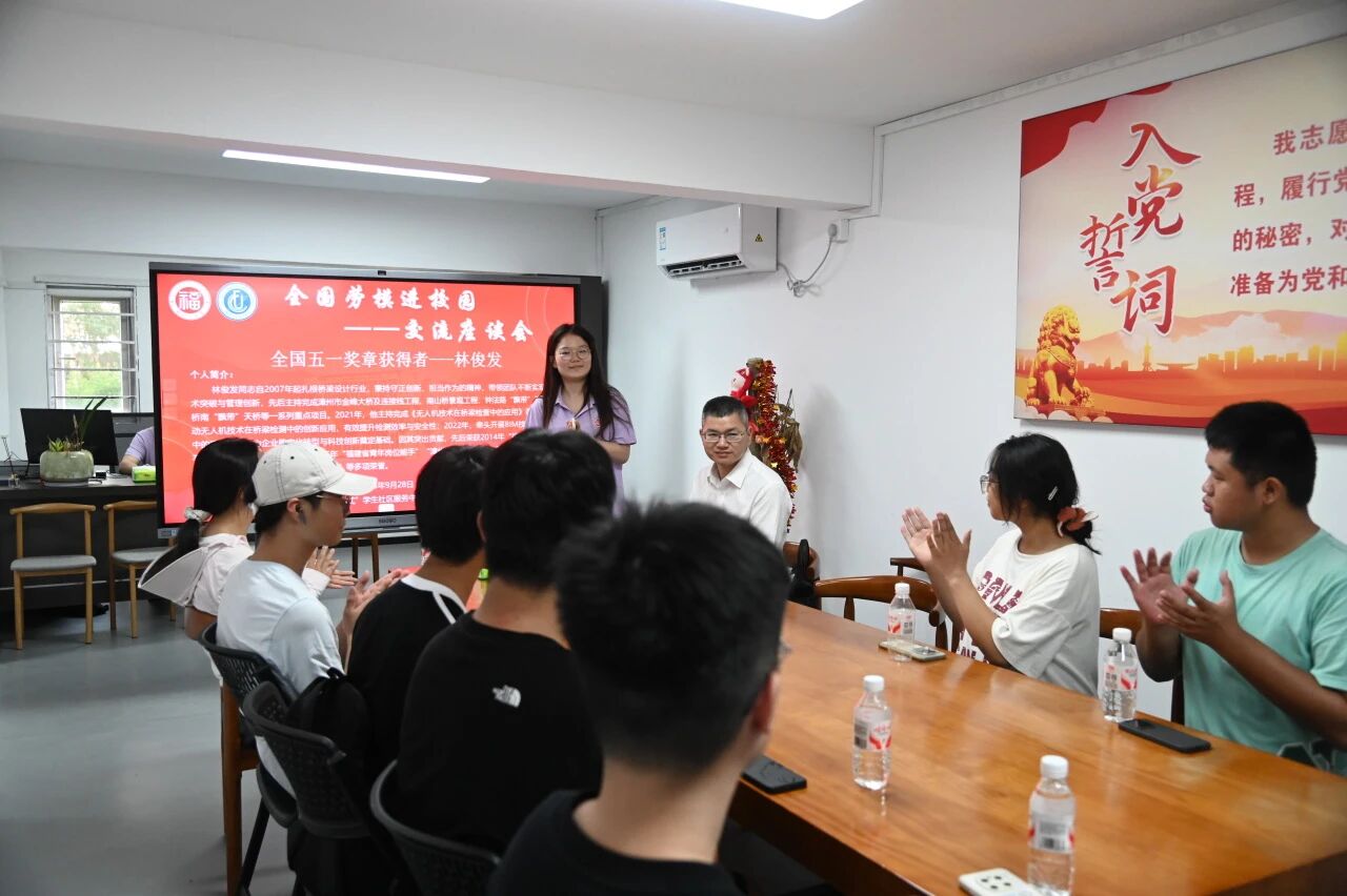 活动伊始,李诗琪老师详细介绍了林俊发的职业履历与荣誉成就。从2007年扎根桥梁设计一线,到主持漳州金峰大桥、南山桥景观工程等地标项目,再到荣获“全国五一劳动奖章”“福建省劳动模范”等多项荣誉,林俊发始终秉持着“守正创新、担当作为”的职业精神,深深感染了现场同学,引来阵阵掌声。