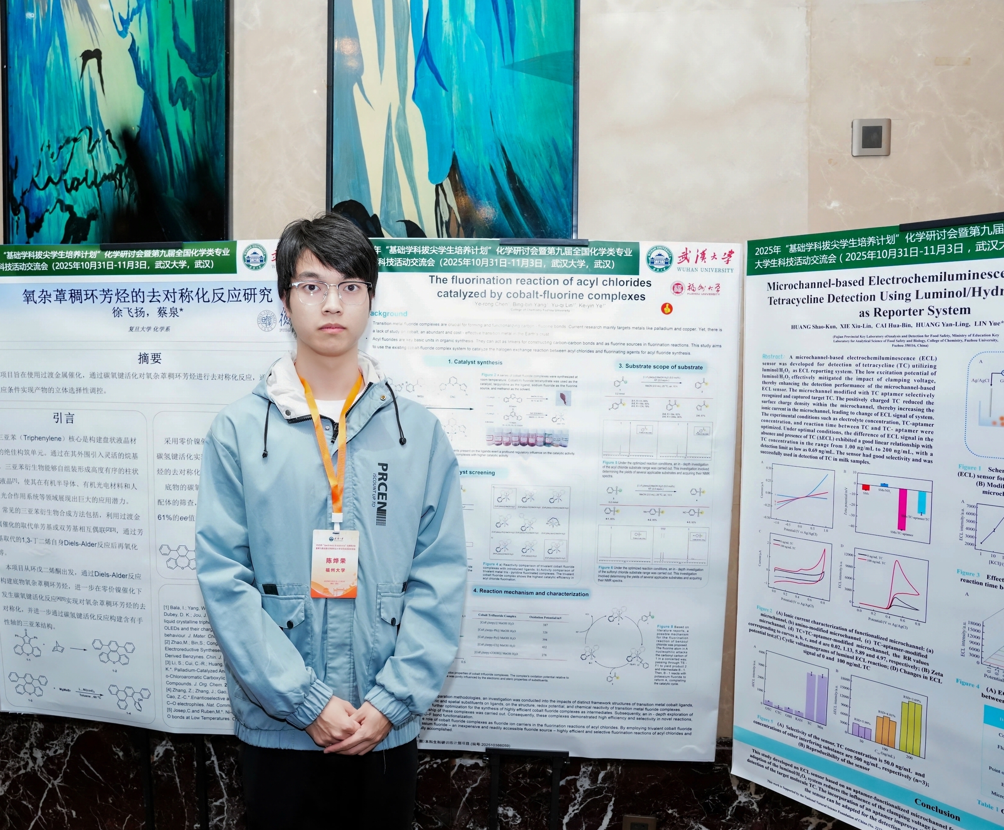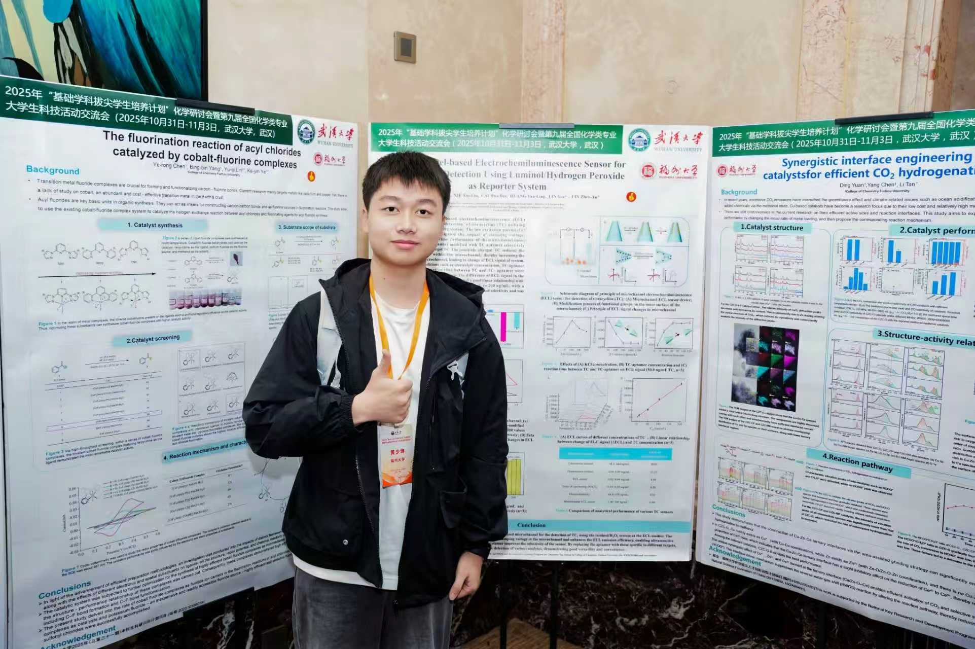 在本次学术交流活动中,我以墙报形式分享了《基于钴氟络合物的氟氯交换反应研究》的相关工作。这一研究聚焦于利用钴氟络合物实现高效氟氯交换,为有机氟化学合成提供新路径。交流中,我与来自全国各地的同学进行了深入探讨。这次学术交流让我在思维碰撞中收获了新的灵感,也更加坚定了在化学领域深耕的决心。未来,我将继续探索,力求在该反应体系的实用性和创新性上取得更多突破。