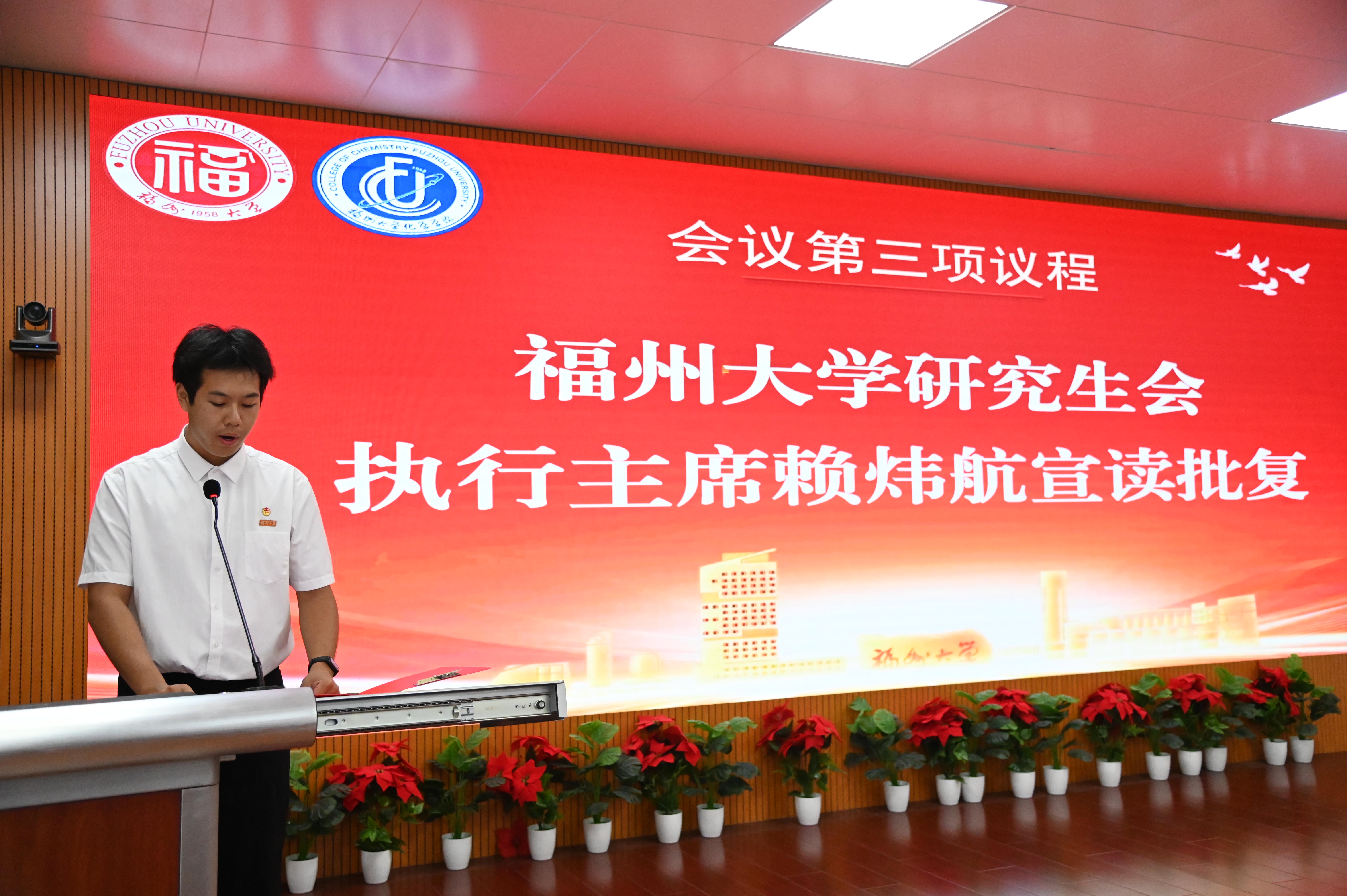 研究生会执行主席赖炜航宣读校研究生会批复并致辞。在致辞中,赖炜航肯定了木瓜视频