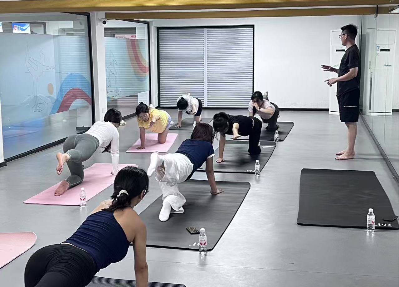基础训练后,开启进阶教学,陈国斌老师进一步引入了三角式、树式、下犬式等进阶体式。教学过程中,老师时刻关注着每一位同学的动作,耐心地纠正细微偏差,鼓励大家循序渐进地完成挑战。