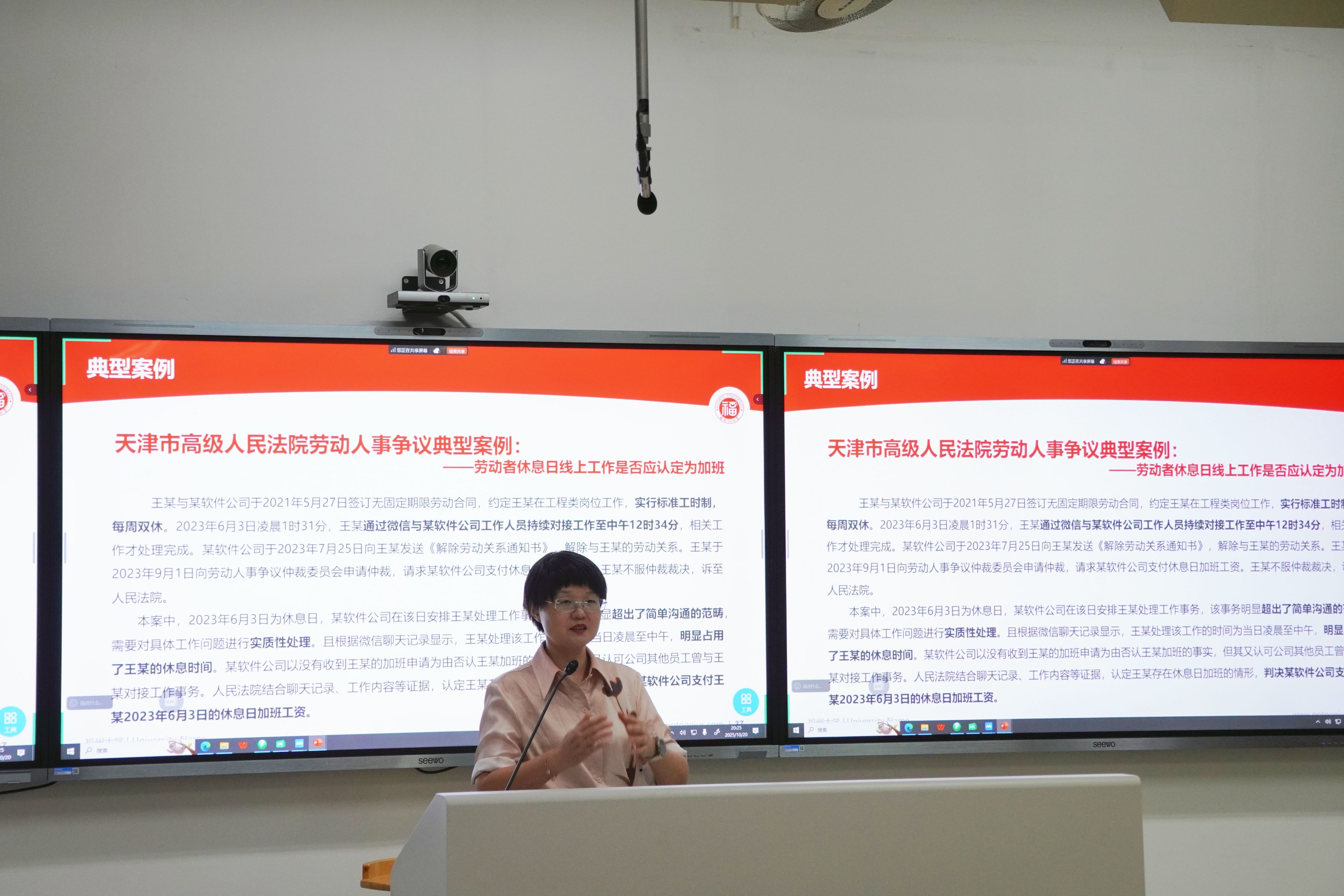 接着,杨莉萍老师以《劳动法》《劳动合同法》为基础,结合真实案例,深入剖析了劳动合同签订、试用期权益、薪资福利等关键环节中的法律风险与应对策略,还讲解了离职权益清算及“五险一金”缴纳的法定要求,补充了新型用工争议处理与劳动维权证据留存方法。