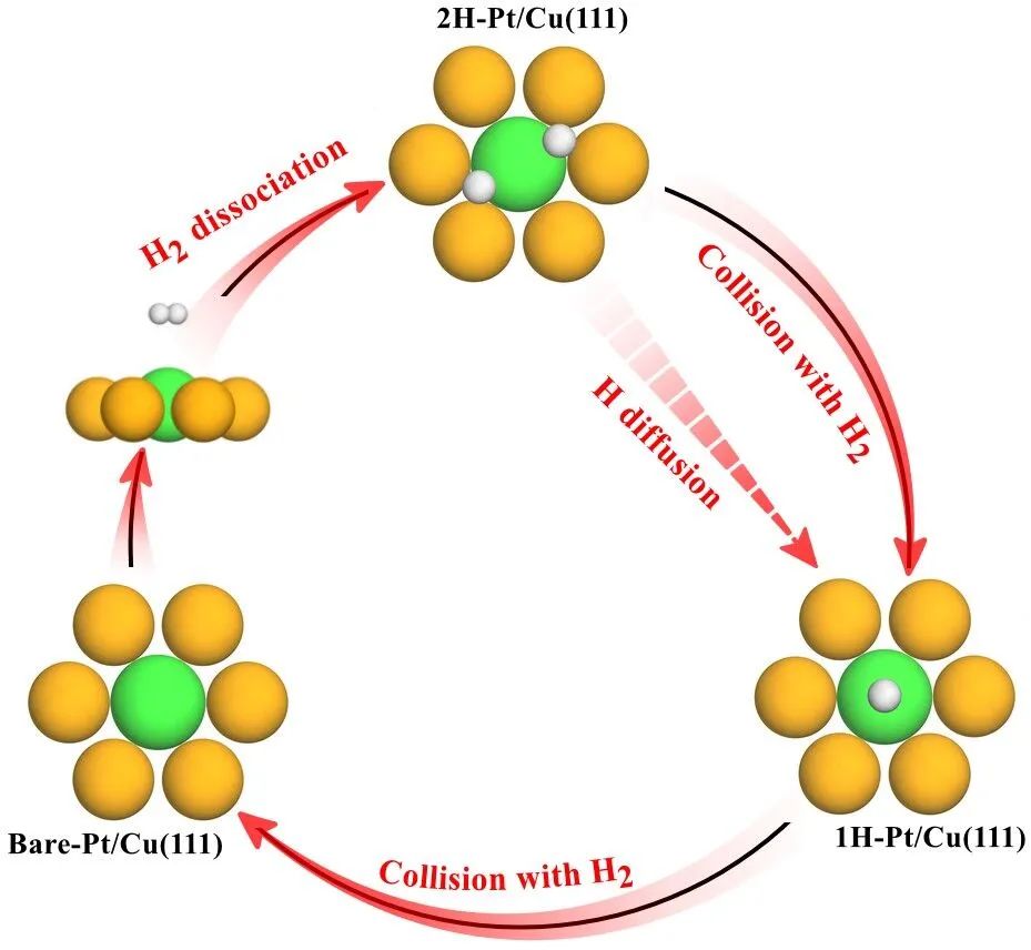氢溢流是一种典型的界面动态行为,是指在固体表面氢富集区(“活性位”)吸附或形成的活性氢原子在相同条件下动态迁移到另一个不吸附或不形成氢物种的氢匮乏区(“惰性”载体)。这种现象普遍存在于各种化学过程中,如催化加氢和储氢。目前,氢溢流已通过设计单原子合金(SAAs)催化剂得到有效利用,这些催化剂通常由金属载体(如Cu、Ag和Au)与原子分散的铂族金属(PGM,如Pd和Pt)组成。先前的实验观测和理论计算均表明,SAAs的活...