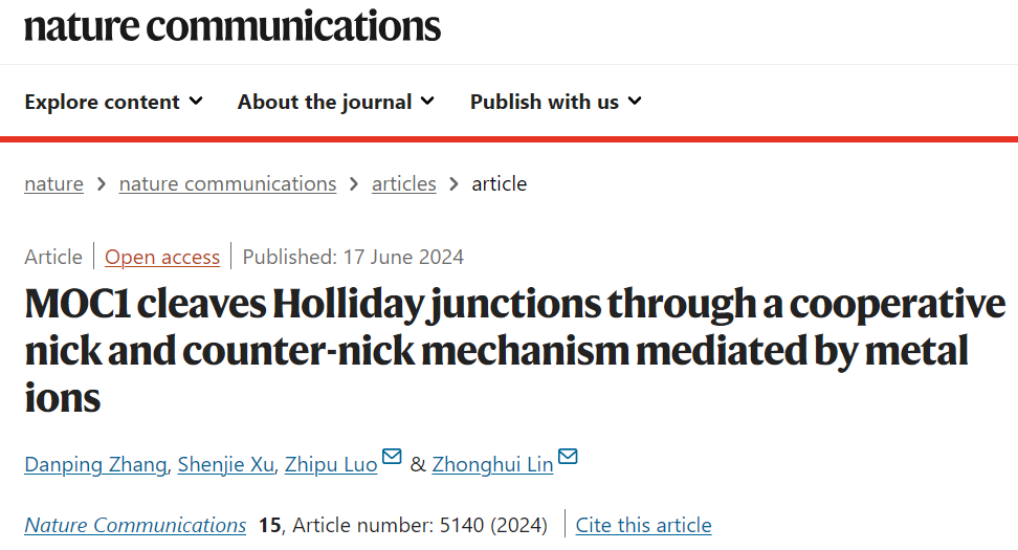 林忠辉教授团队在《自然通讯》上发表金属离子催化Holliday junction解离的详细工作机制
