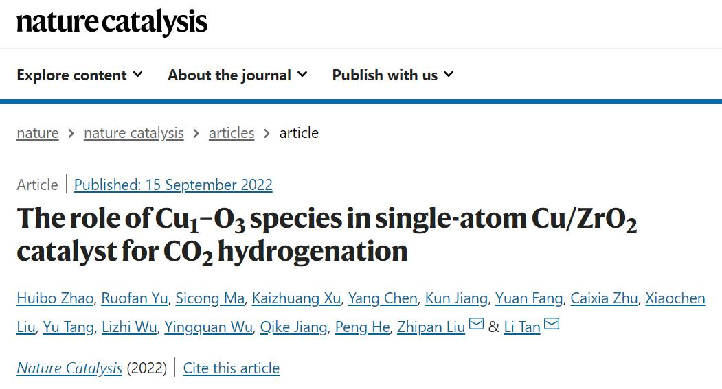 谭理课题组与复旦大学刘智攀课题组合作在单原子催化剂用于二氧化碳热催化合成甲醇领域取得突破性进展,相关研究成果以“The role of Cu1–O3 species in single-atom Cu/ZrO2 catalyst for CO2 hydrogenation”为题发表在催化学科国际顶级期刊Nature Catalysis (DOI:10.1038/s41929-022-00840-0)。文章第一作者为木瓜视频